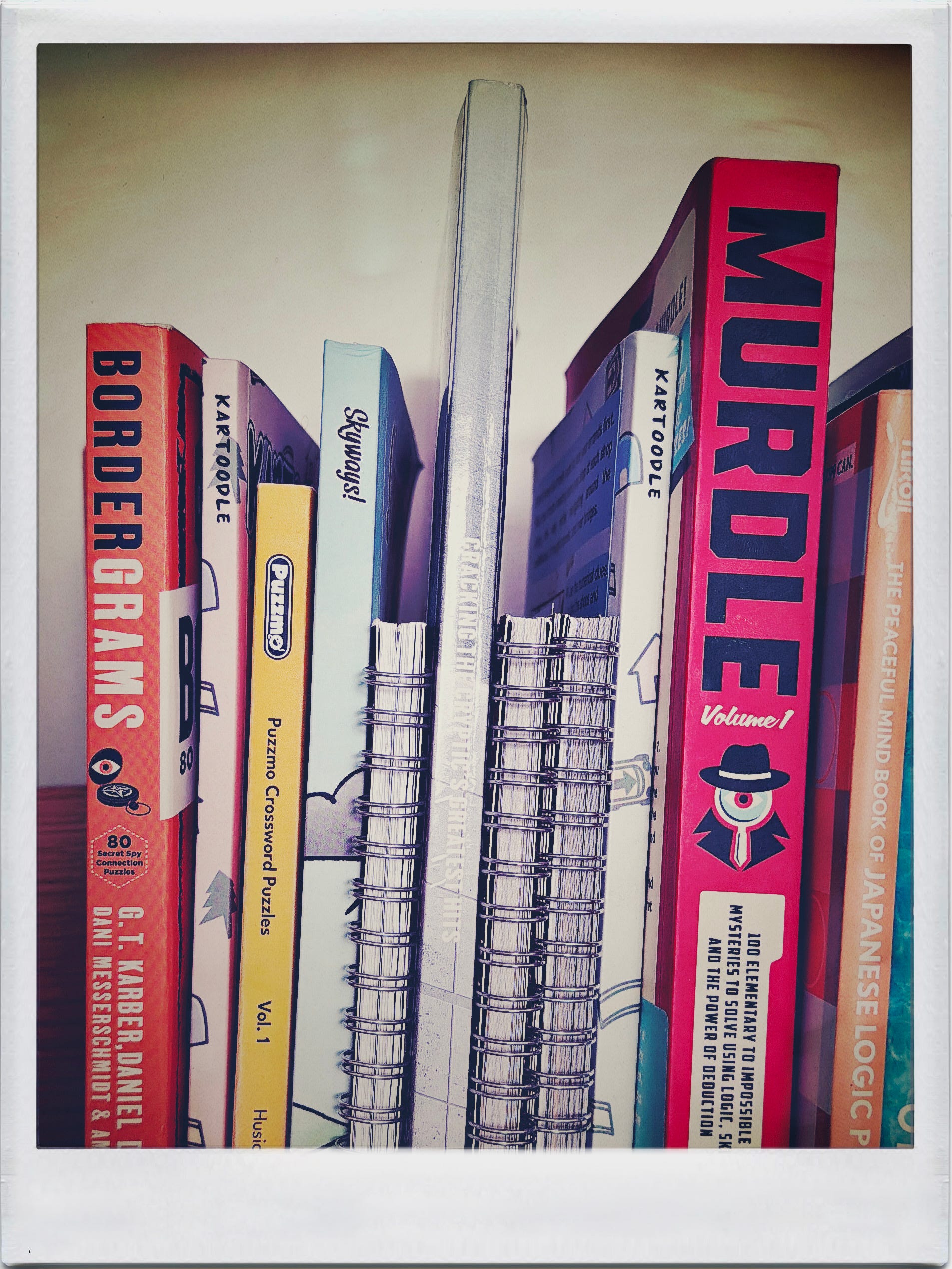 10 puzzle books sit on my living room bookshelf. Some are index card sized and spiral bound, others are tall, most are thin, like a novella. A casual observer probably wouldn’t know they were puzzle books.